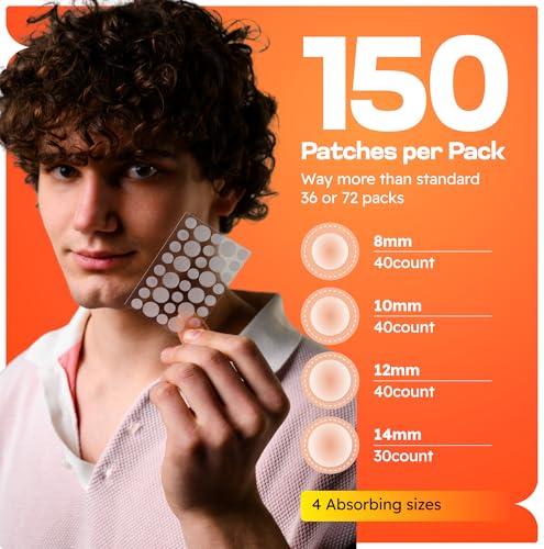 - FOUR SIZES FOR PRECISE COVERAGE: Available in Pack of 150 count - 14mm, 12mm, 10mm, and 8mm sizes to perfectly fit any spot, ensuring comprehensive coverage and maximum effectiveness for all blemish types.